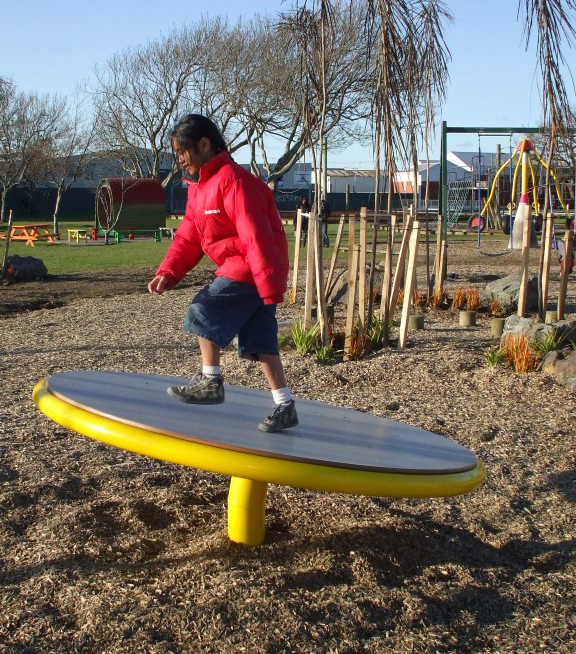 These discs spin on an angle above the ground. They can be used in a variety of ways, sitting, lying, standing, and are most suited to people with good balance skills, and teenagers.